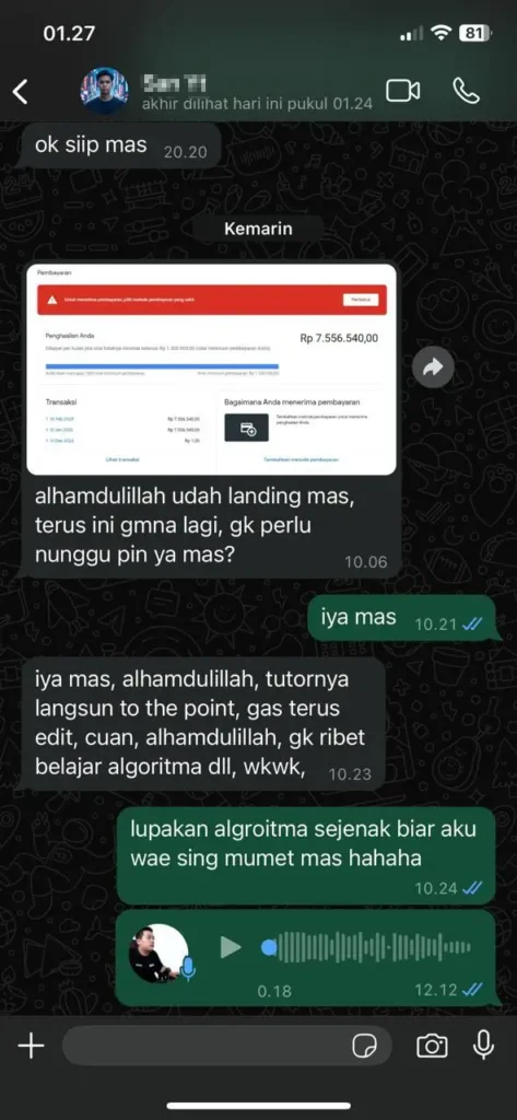 Ini tergantung dari ketekunan dan strategi ketika mempraktekkan ilmu yang sudah disampaikan. Hasil setiap orang bervariasi, ada yang hitungan hari atau minggu, ada pula yang hitungan bulan sudah bisa monet.